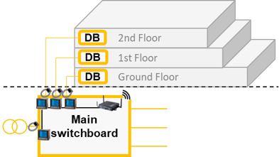 *In this example, the 4 sub-meters allow a measurement per zone are connected to a gateway to centralise